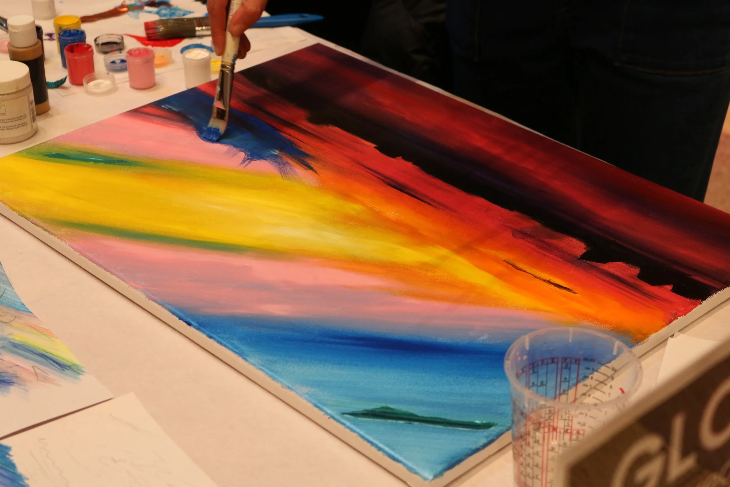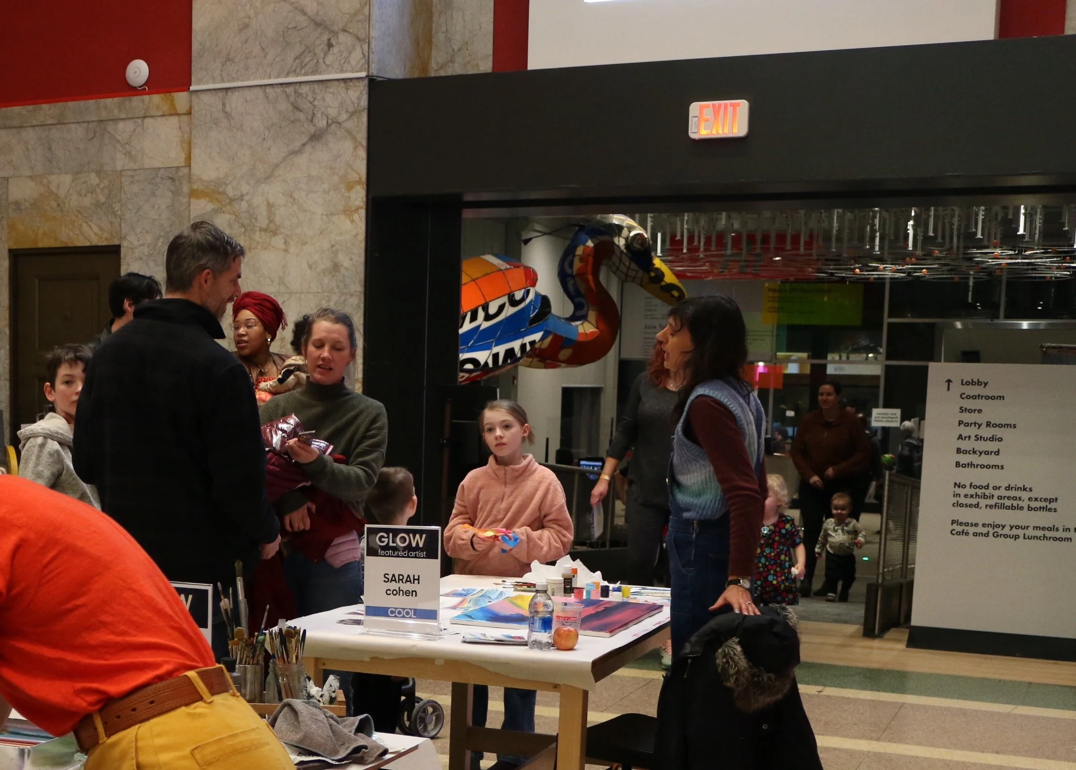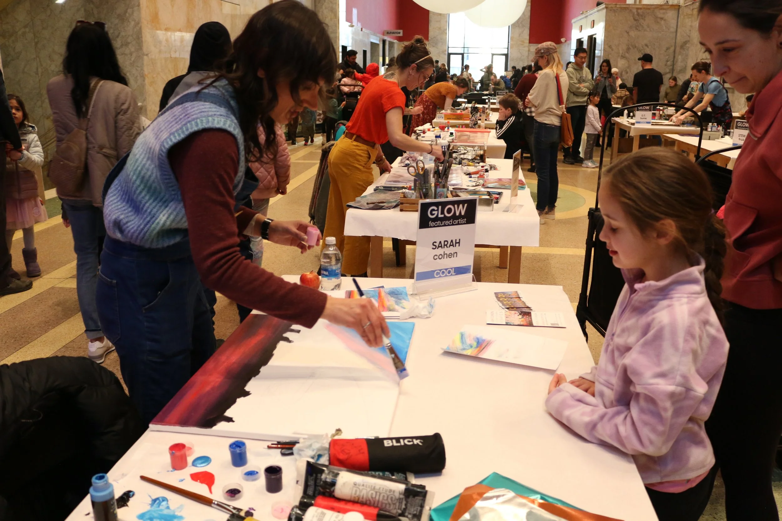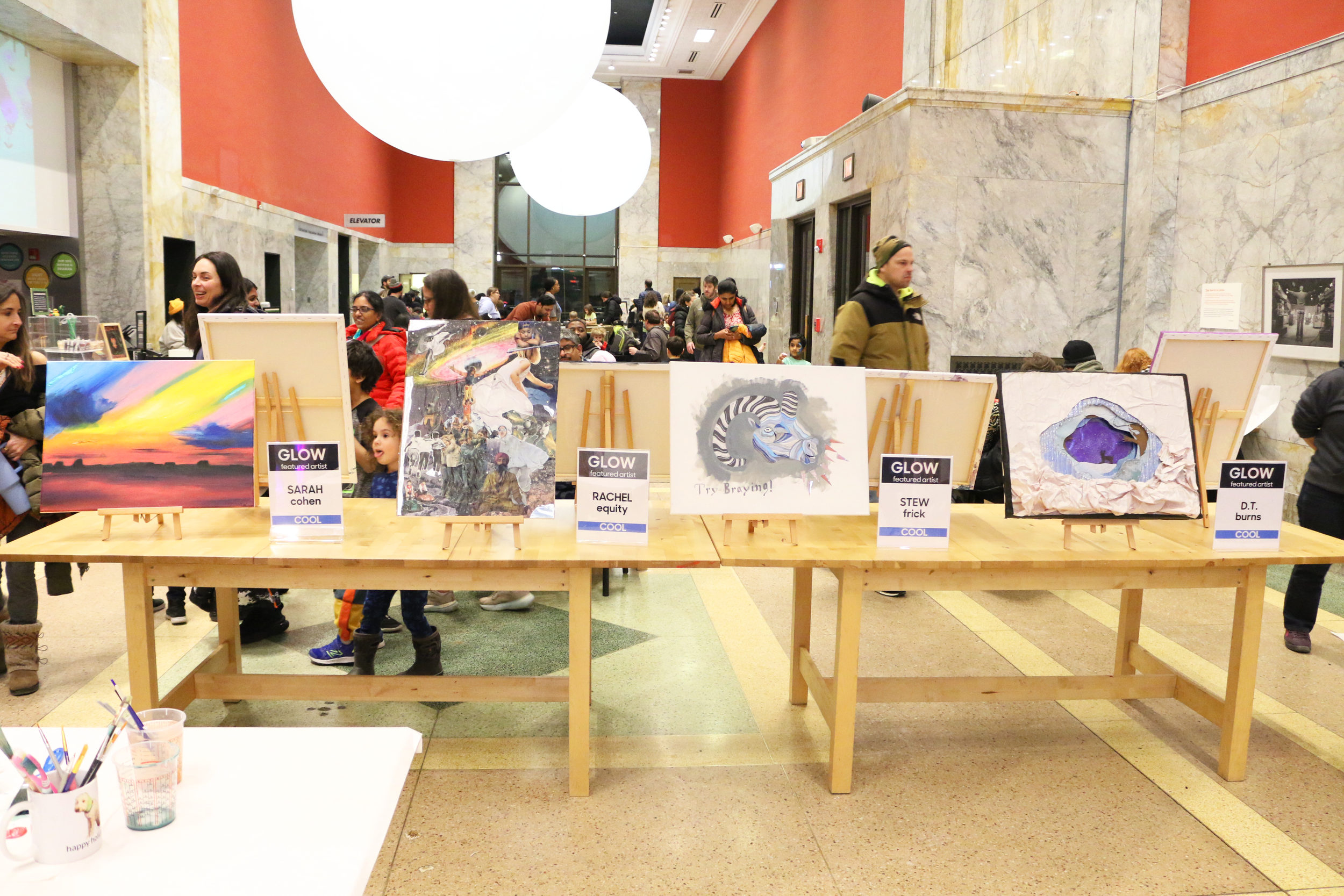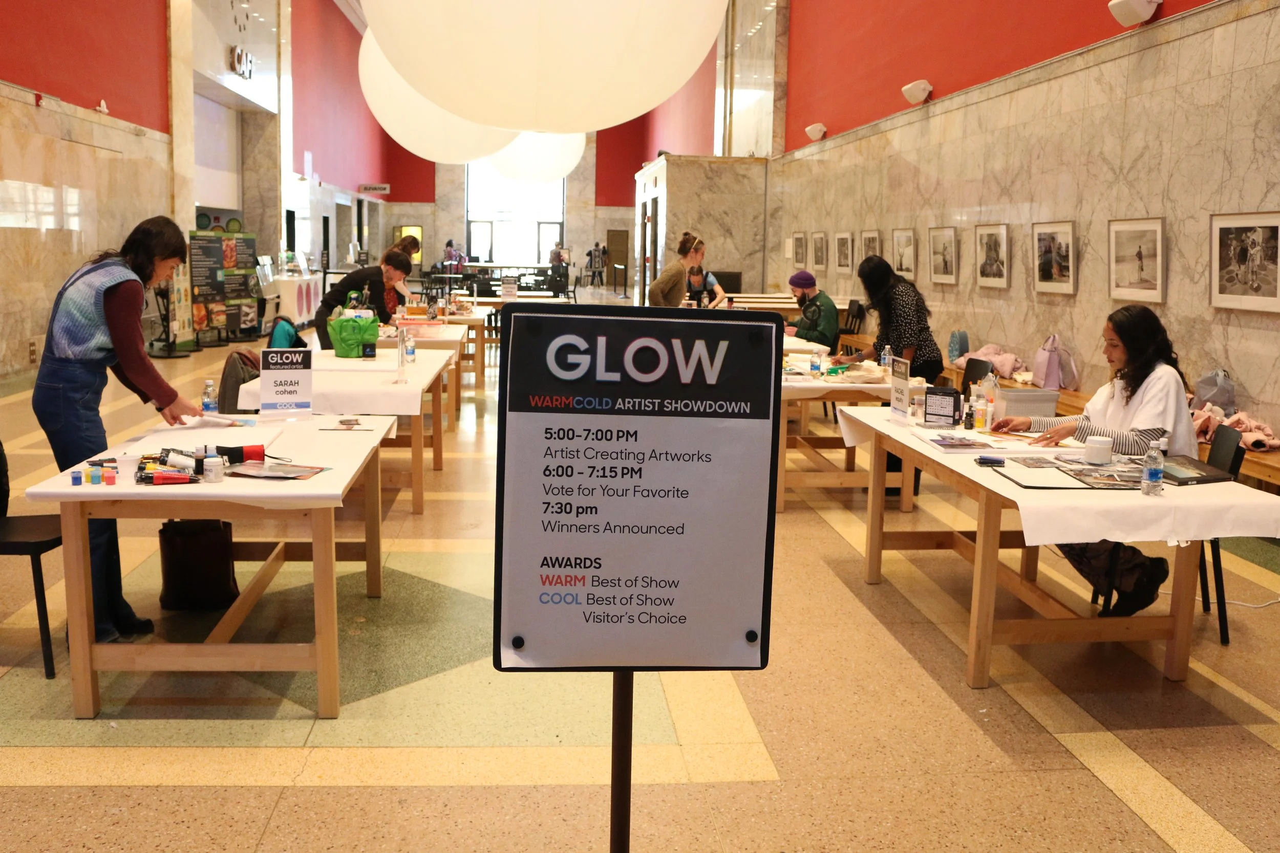 The Children’s Museum of Pittsburgh, voted #2 BEST children’s museum in the nation, invited 8 artists to compete in a festival called “GLOW” in February of 2025. Four artists were given the theme of cool, while the other four artists were given the theme of warm. Artists were given 2 hours to create their work of art live at the event. Works produced must be related in some way (visually and/or conceptually) to the theme designated to each artist. GLOW—an evening of art making, exhibits and performances that glow, spark and light up the dark! Evening activities take place outdoors and on the first floor of the Museum on Saturday, February 22 from 5–8pm.