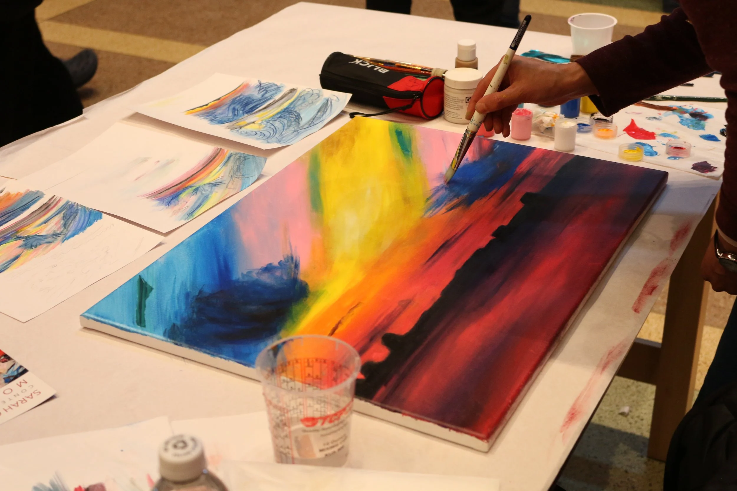 Sarah’s painting on the left, voted VISITOR’S CHOICE